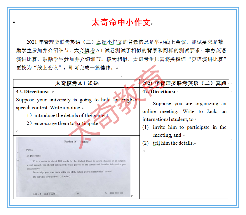 導讀:喜賀太奇教育英語教研組押中英語全部作文附題目押中來源